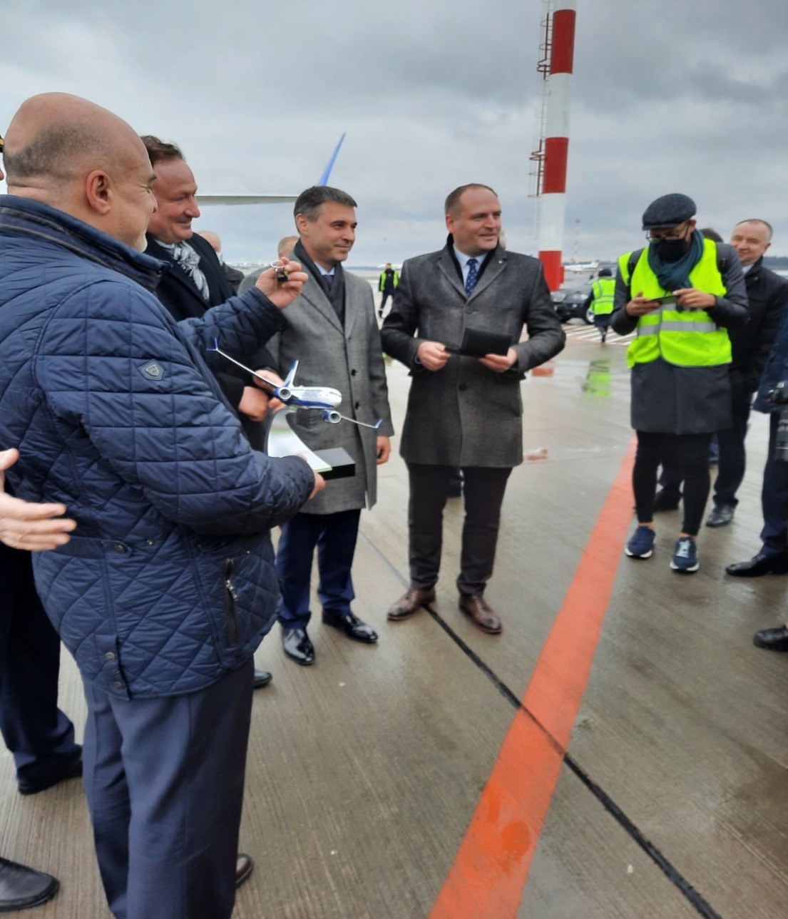 В Национальном аэропорту Минск новый Boeing 737-8 встречал директор Департамента по авиации Артем Сикорский, генеральный директор ОАО «Авиакомпания «Белавиа» Игорь Чергинец и президент Boeing в России и СНГ Сергей Кравченко.