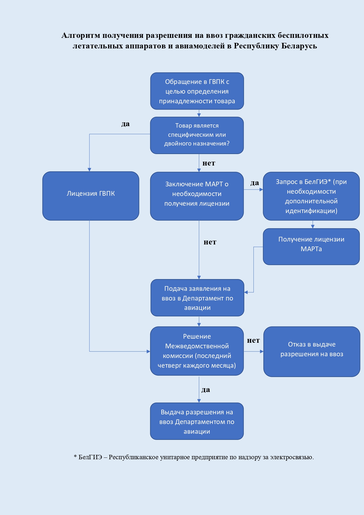 на ввоз гражданских БЛА и авиамоделей в Республику Беларусь, после чего