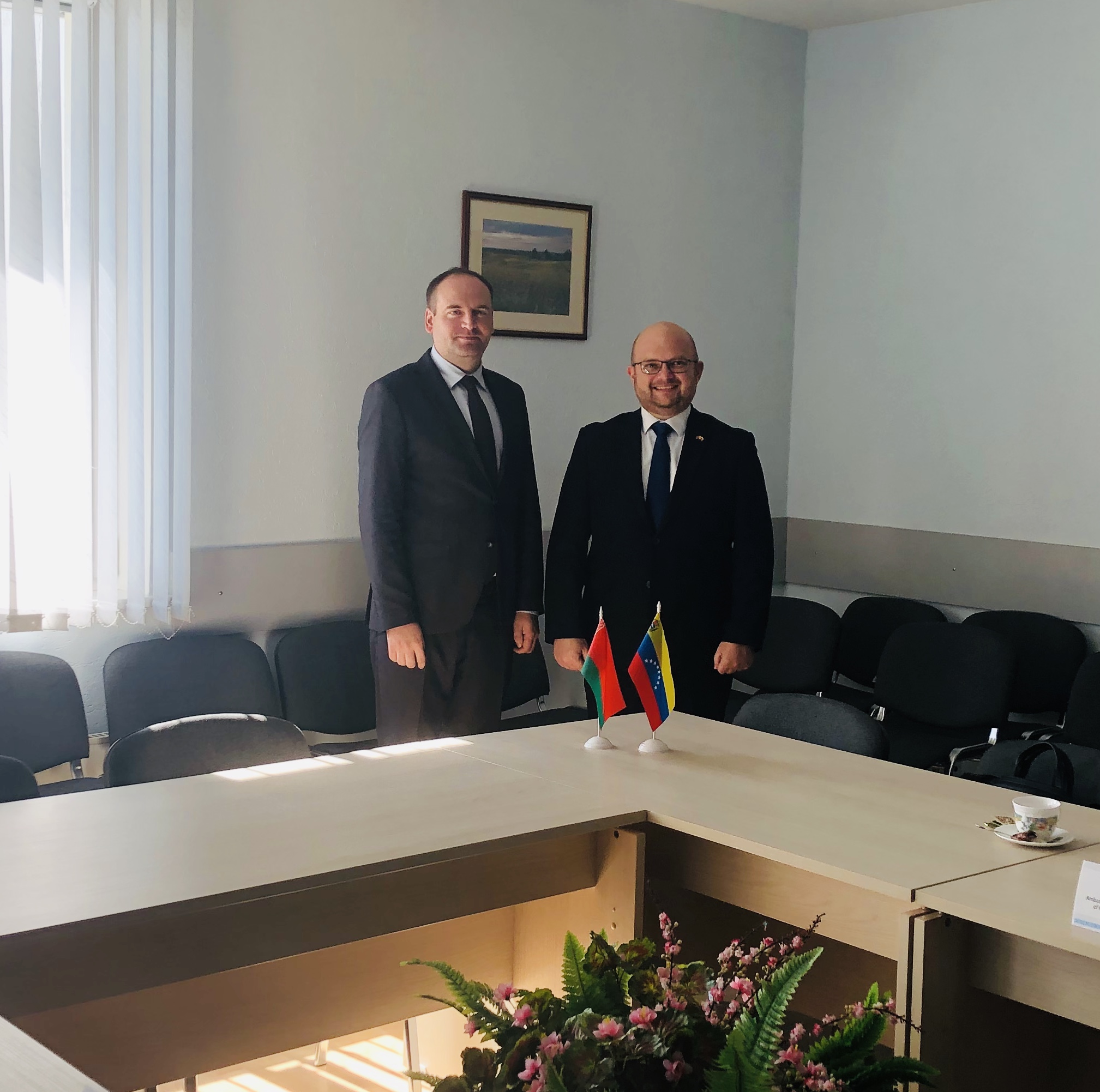Господин посол от имени Национального института гражданской авиации Венесуэлы выразил заинтересованность в дальнейшем развитии и расширении взаимодействия с Беларусью и готовность оказать необходимое содействие в работе по обсуждению проекта межправительственного соглашения о воздушном сообщении между Правительством Боливарианской Республики Венесуэла и Правительством Республики Беларусь.