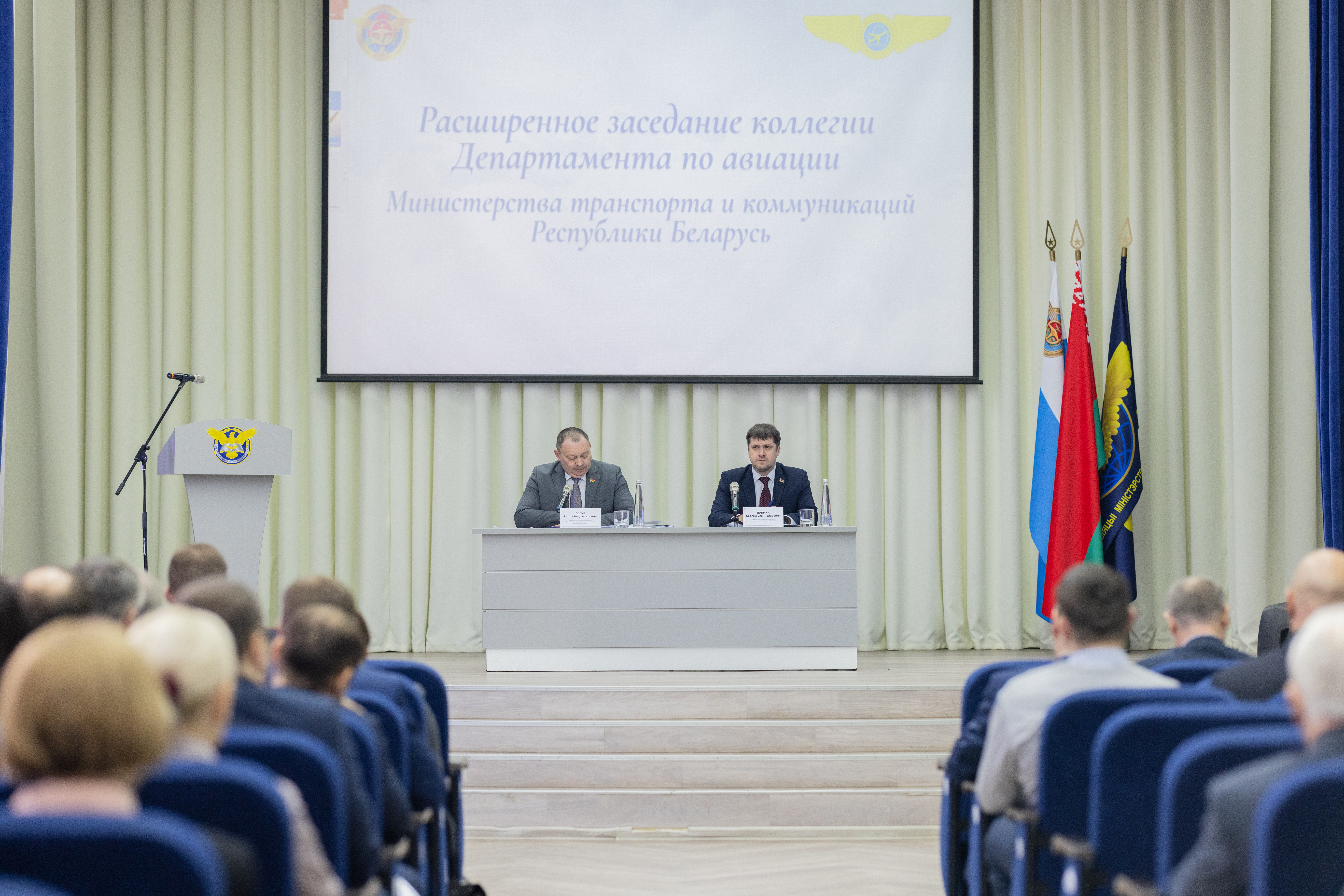 Заседание коллегии продолжили выступления руководителей отдельных авиапредприятий. Своим видением перспектив развития поделились заместитель генерального директора ОАО «Авиакомпания «Белавиа» Глеб Пархамович и генеральный директор государственного предприятия «Белаэронавигация» Артем Сикорский.
