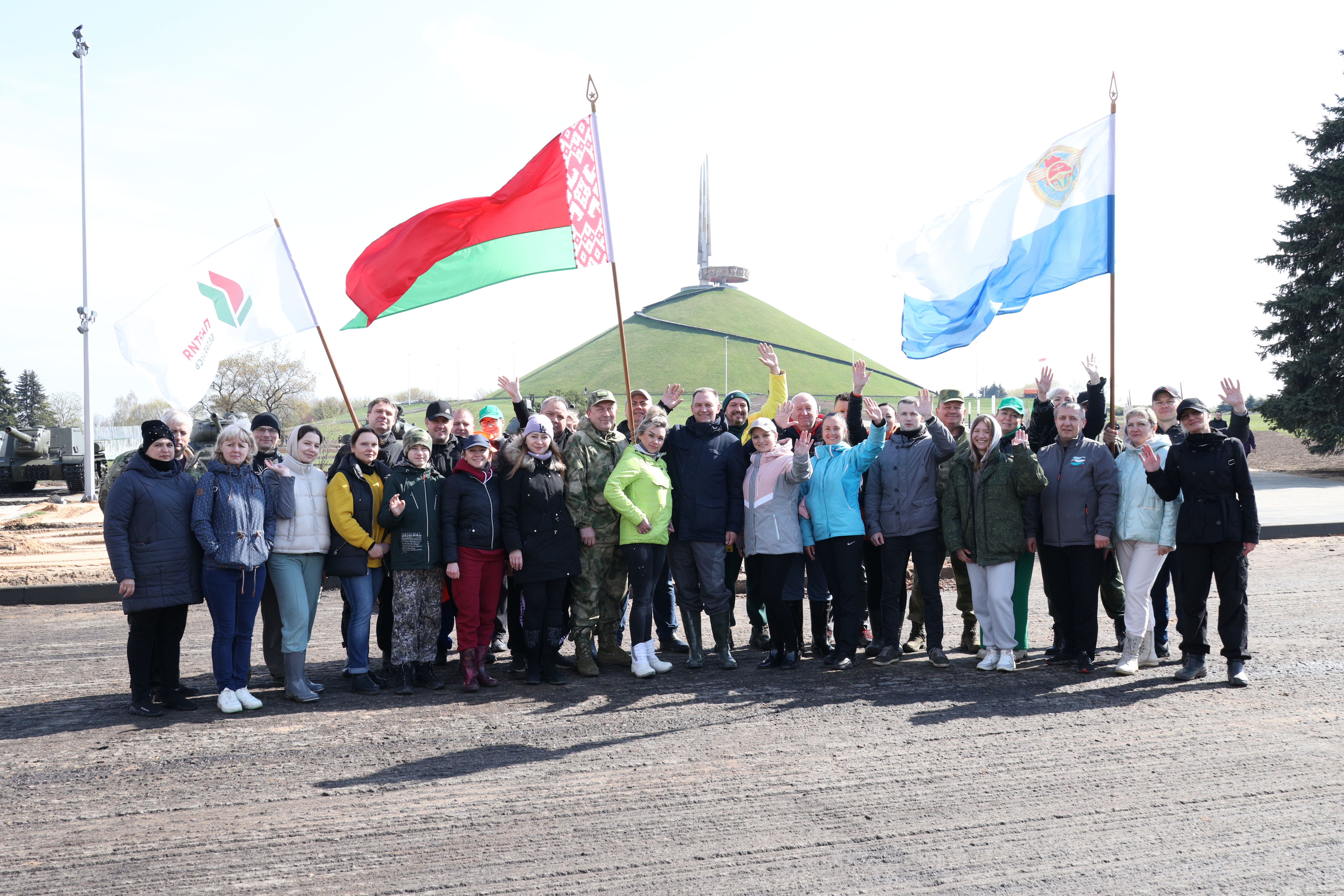 В республиканском субботнике во главе с министром Алексеем Ляхновичем приняли участие первый заместитель министра Валерий Веренич, заместители министра Сергей Дубина и Наталья Александрович, директор Департамента по авиации Игорь Голуб.