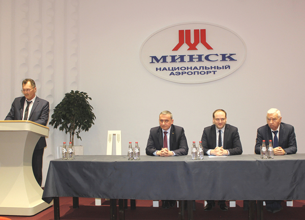 Сегодня в Национальном аэропорту Минск состоялось официальное вступление в должность. Министр транспорта и коммуникаций Алексей Авраменко и директор Департамента по авиации Артем Сикорский представили Вячеслава Хоронеко в должности нового генерального директора коллективу предприятия.